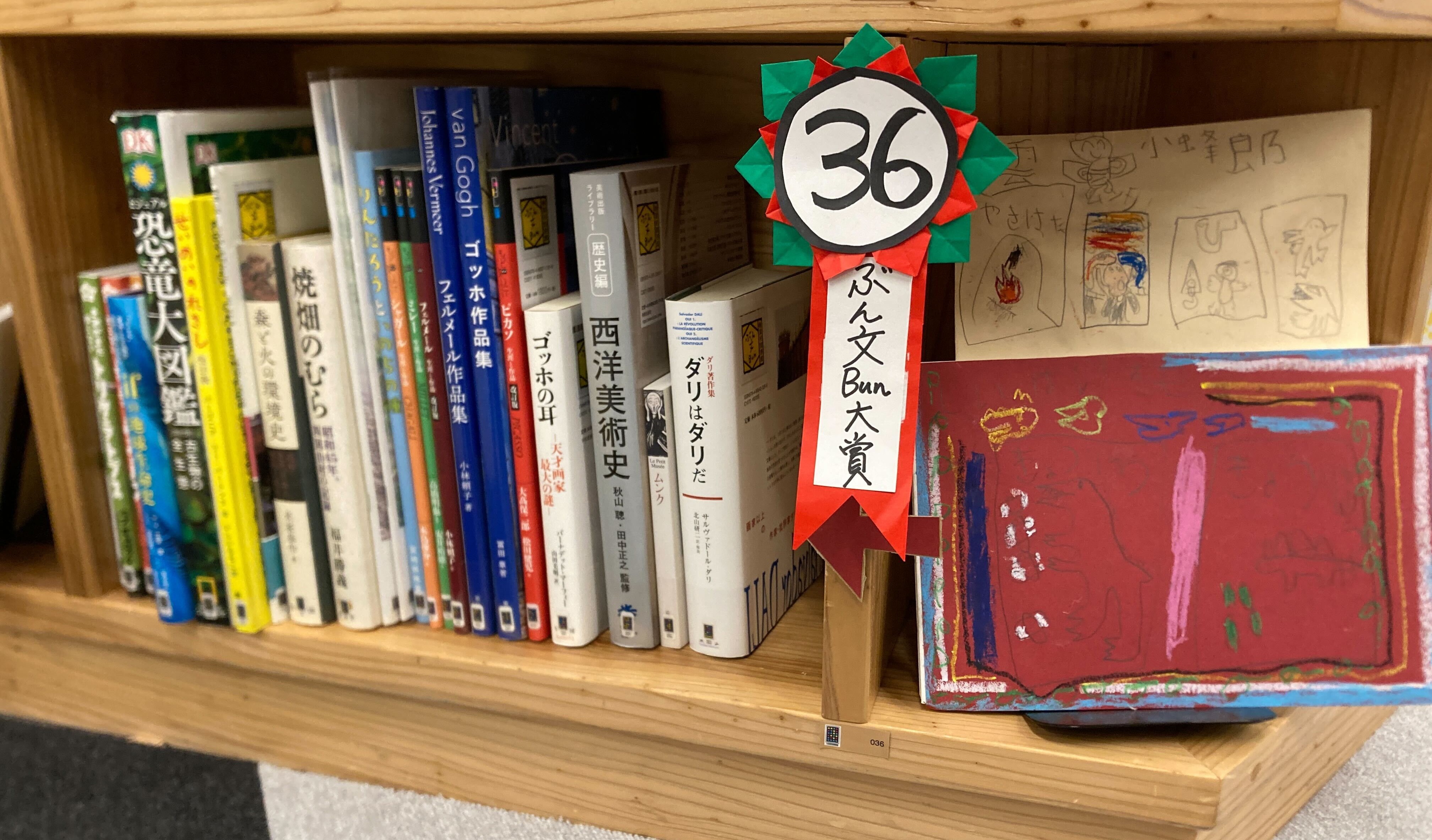 自分の好きな本、そして、自分と同じ小学生に勉強になりそうな本を選んで、本棚を作ってくれました。自分の好きな本だけではなく、この棚を見るかもしれない誰かのために!と本を選んでいる姿勢が素敵でした♪