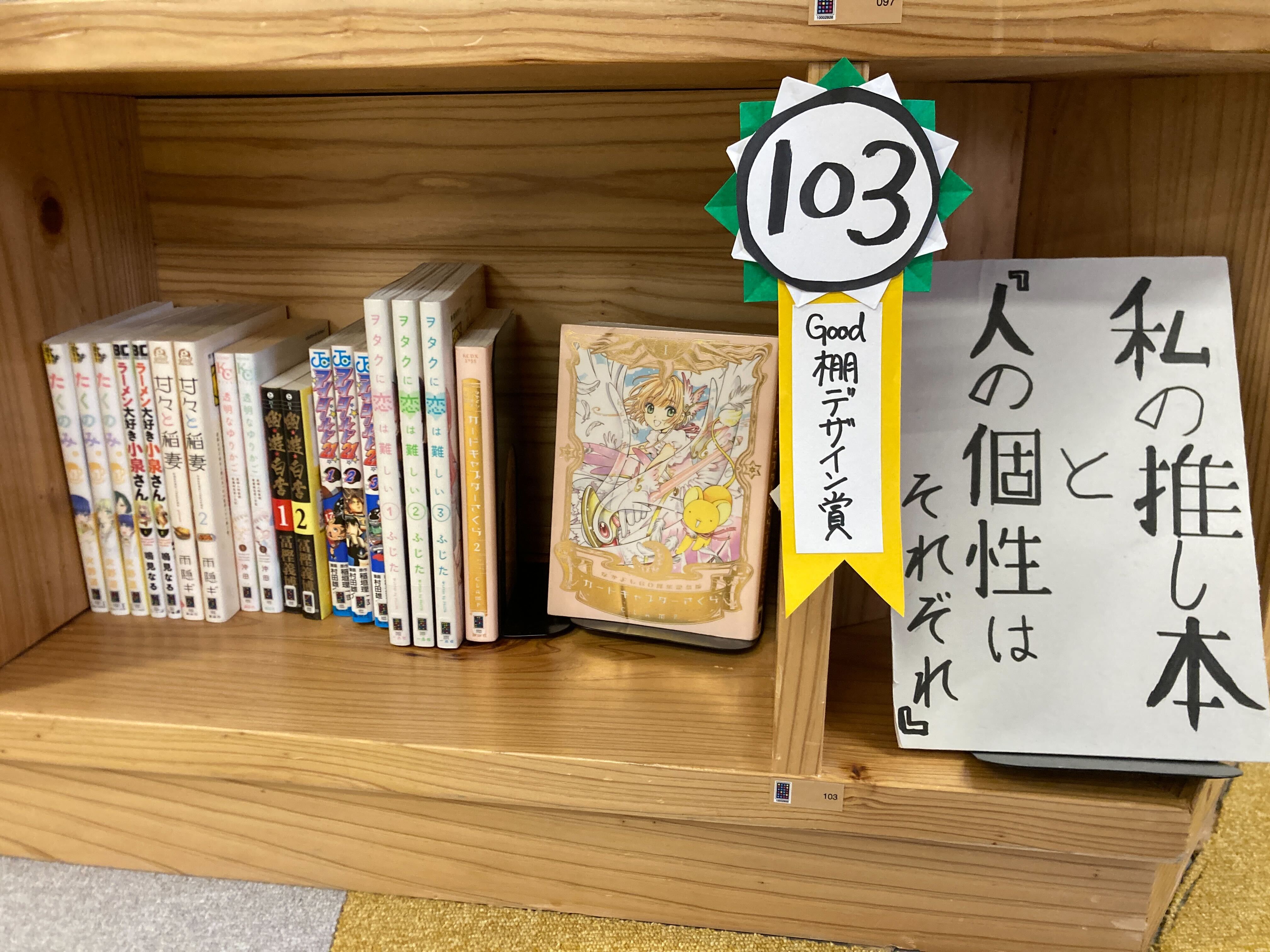 「Good!棚デザイン賞」受賞作品2作目はこちらの棚!自分の「推し本」をたくさん紹介してくれました♪