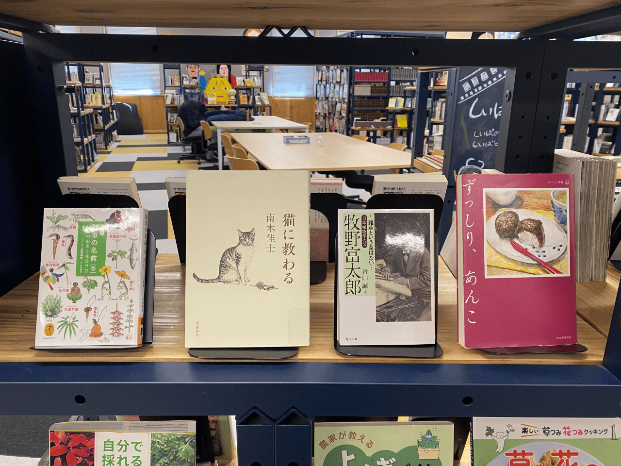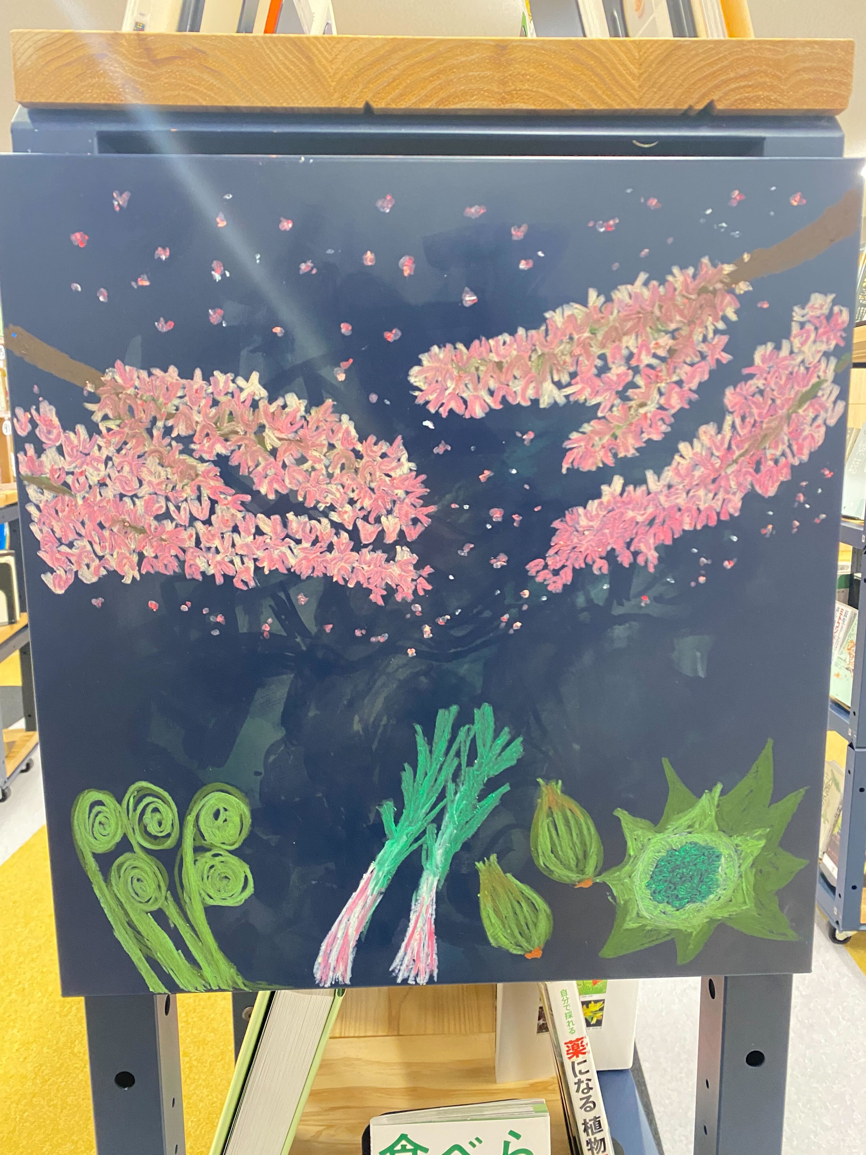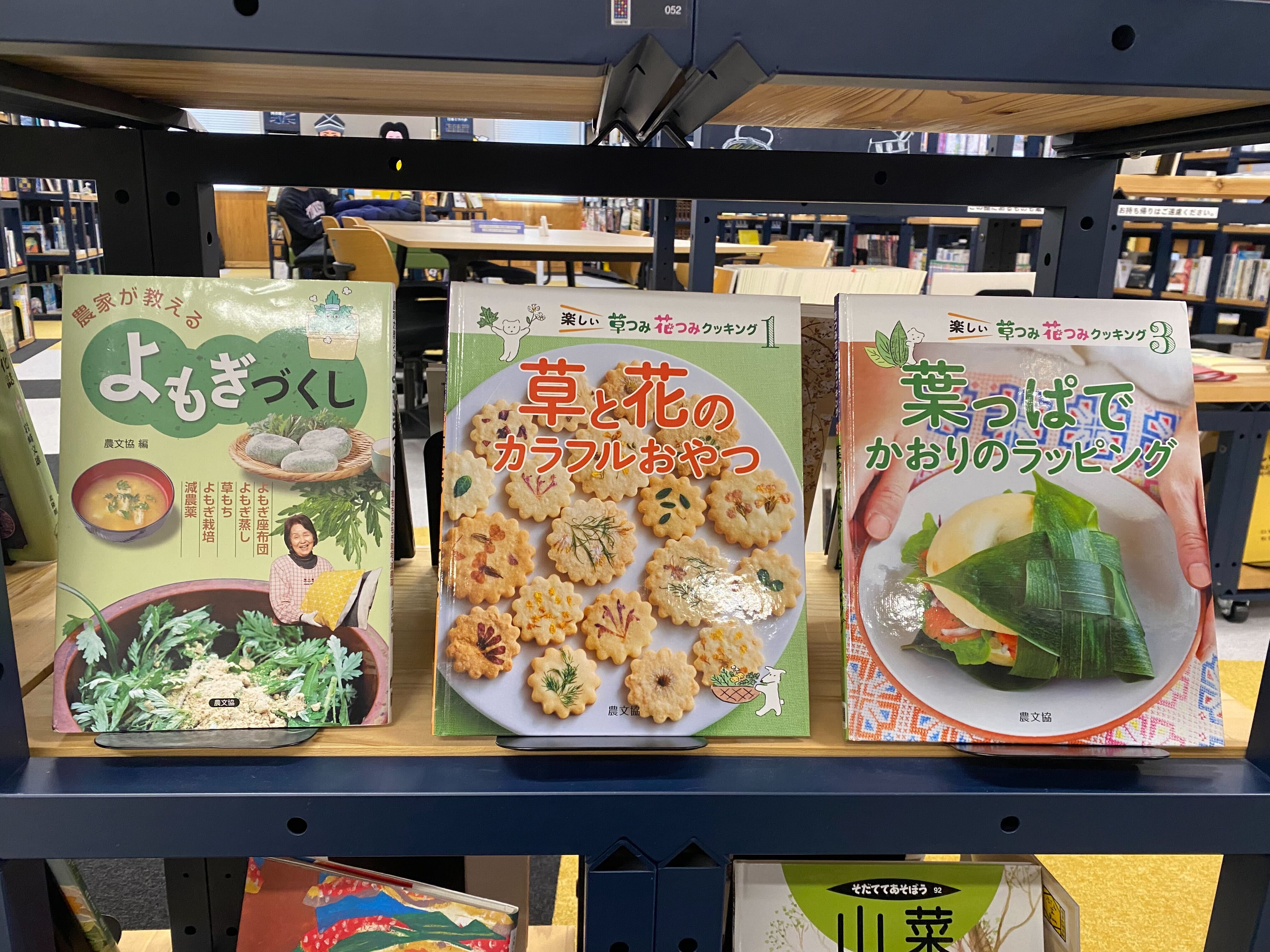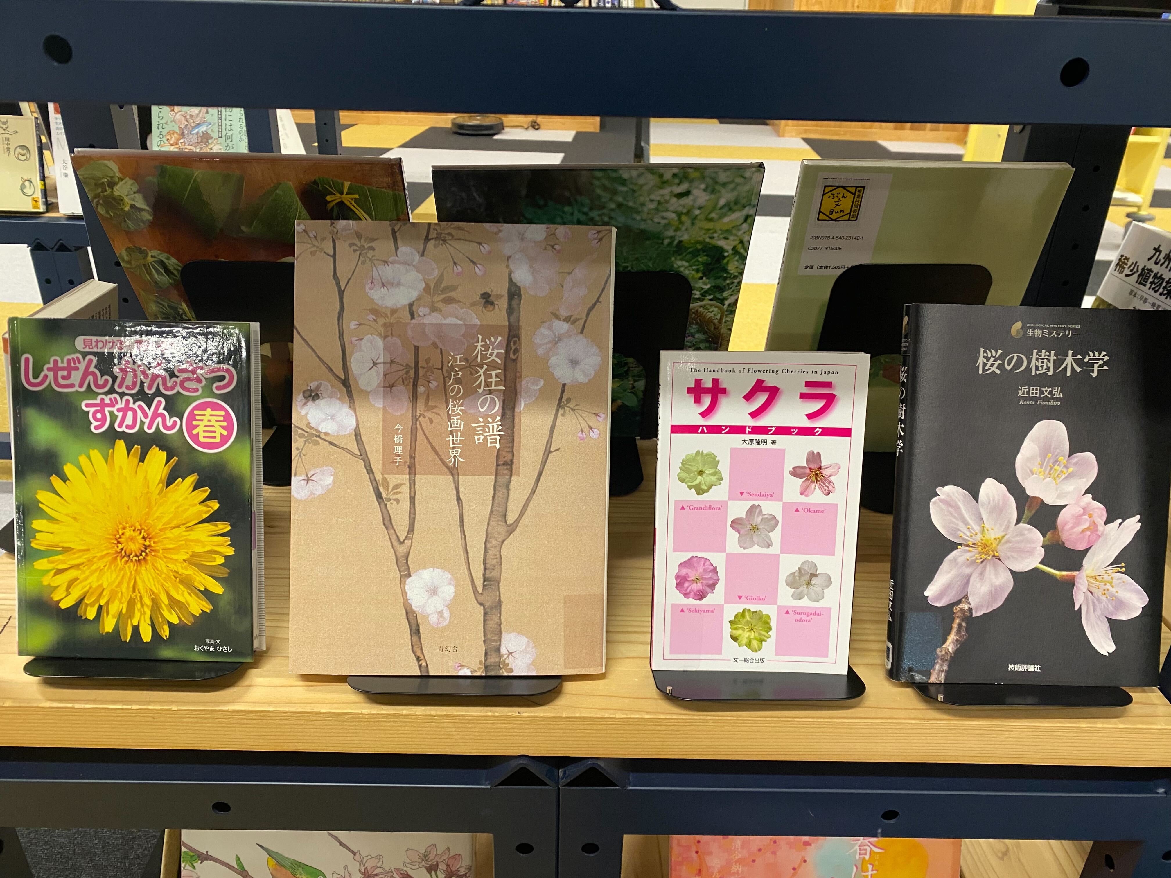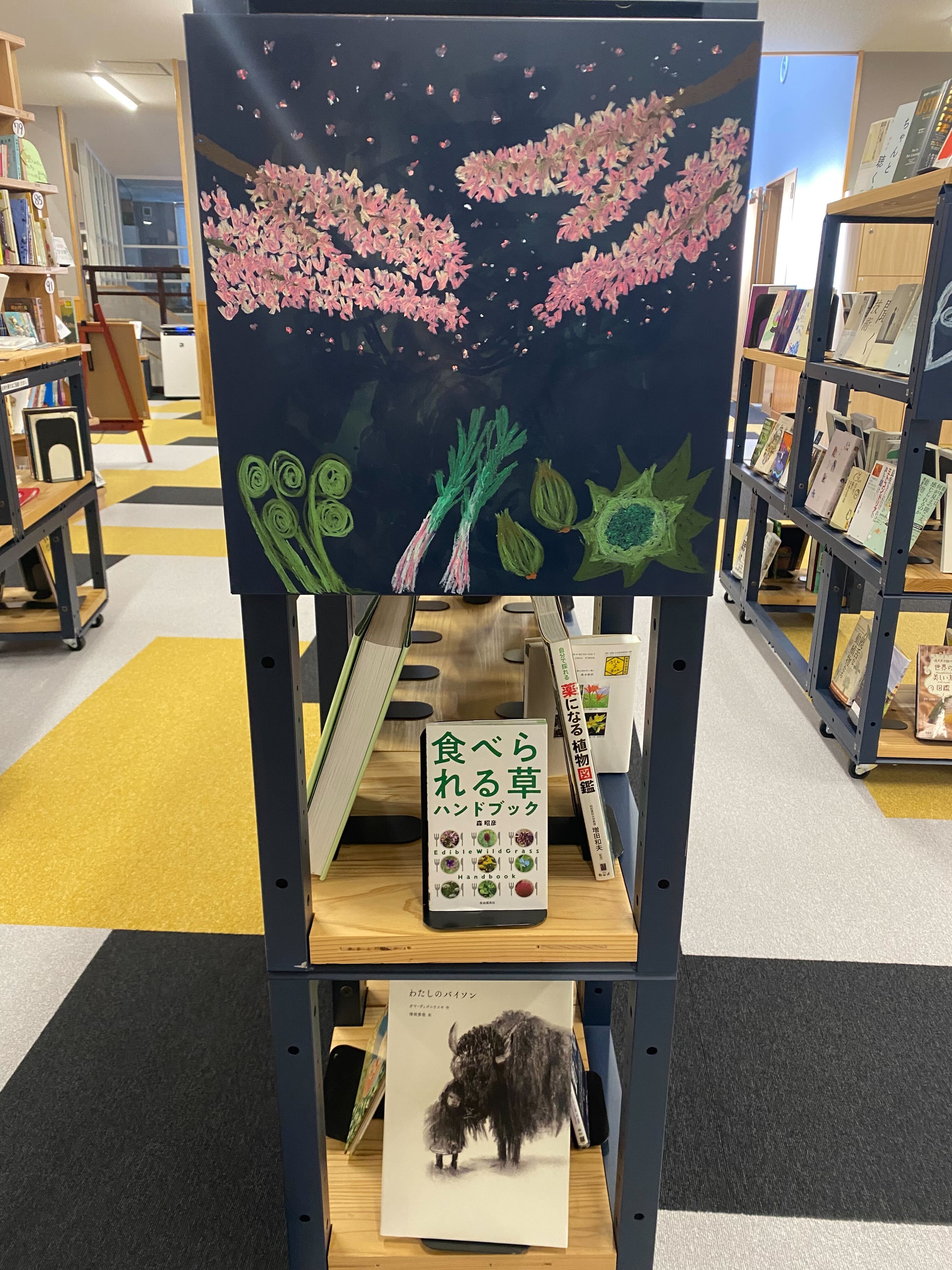 春の美しさを楽しむ小説や絵本、本や春の植物を観察できる図鑑や山菜や野草を使った料理の本などを並べております。