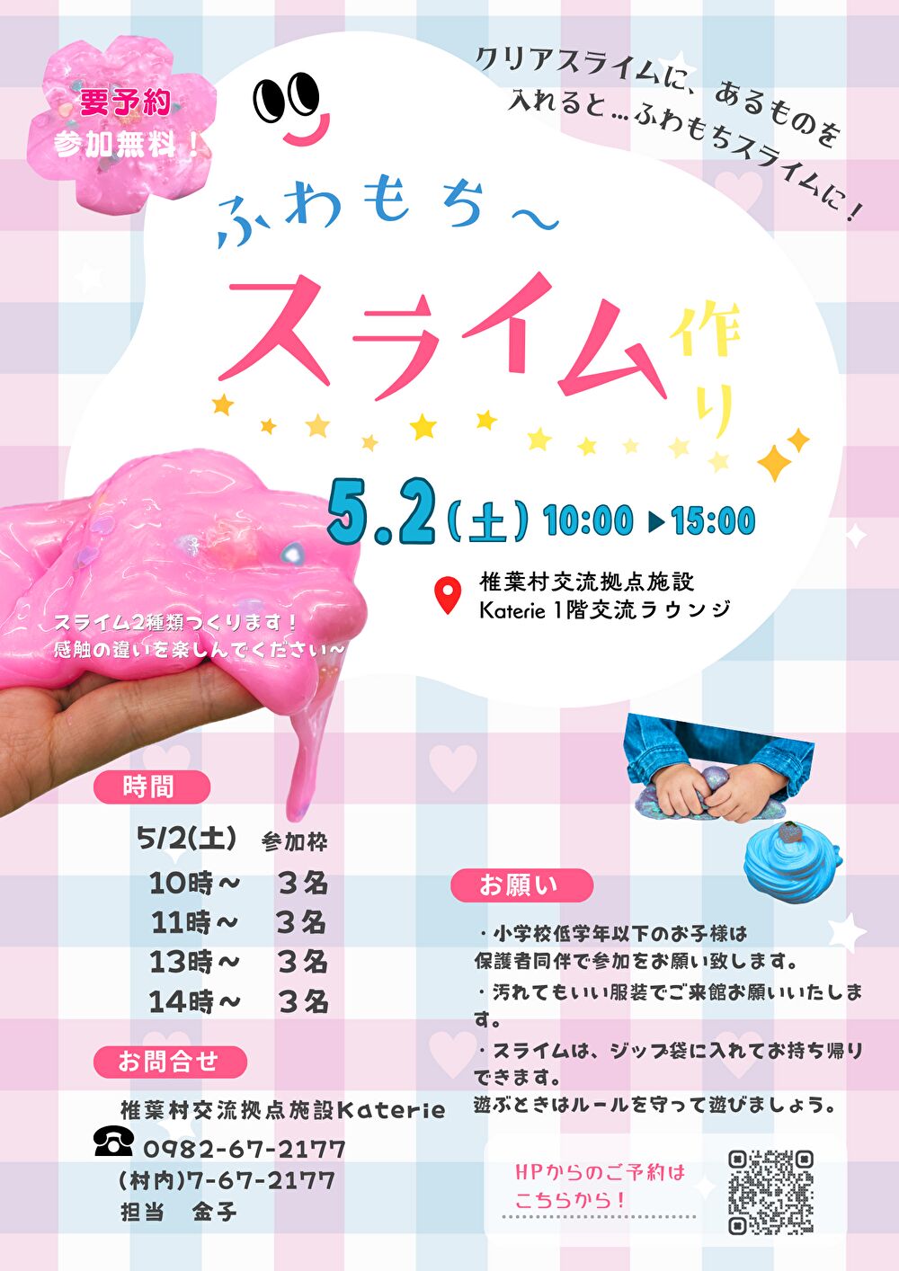 GW期間中の5/2(土)、手作りスライムのイベントを開催します♪
