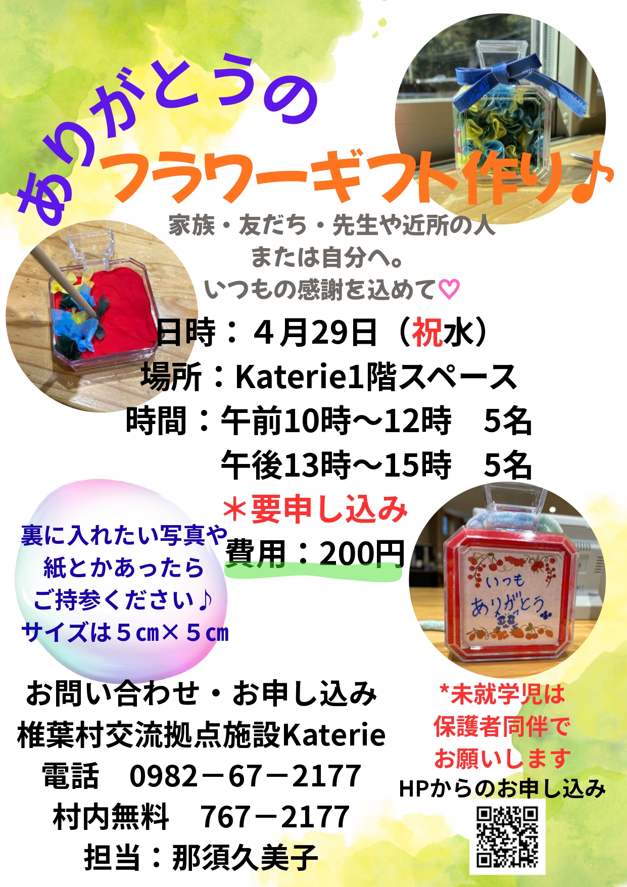 裏に入れたいものや写真などありましたら、ご持参ください。サイズは5㎝×5㎝です。 何かにおいをつけたいなと思う方は、お持ちの香水などにおいをつけるものをご持参ください。 *こちらではにおいの準備はございません* |
