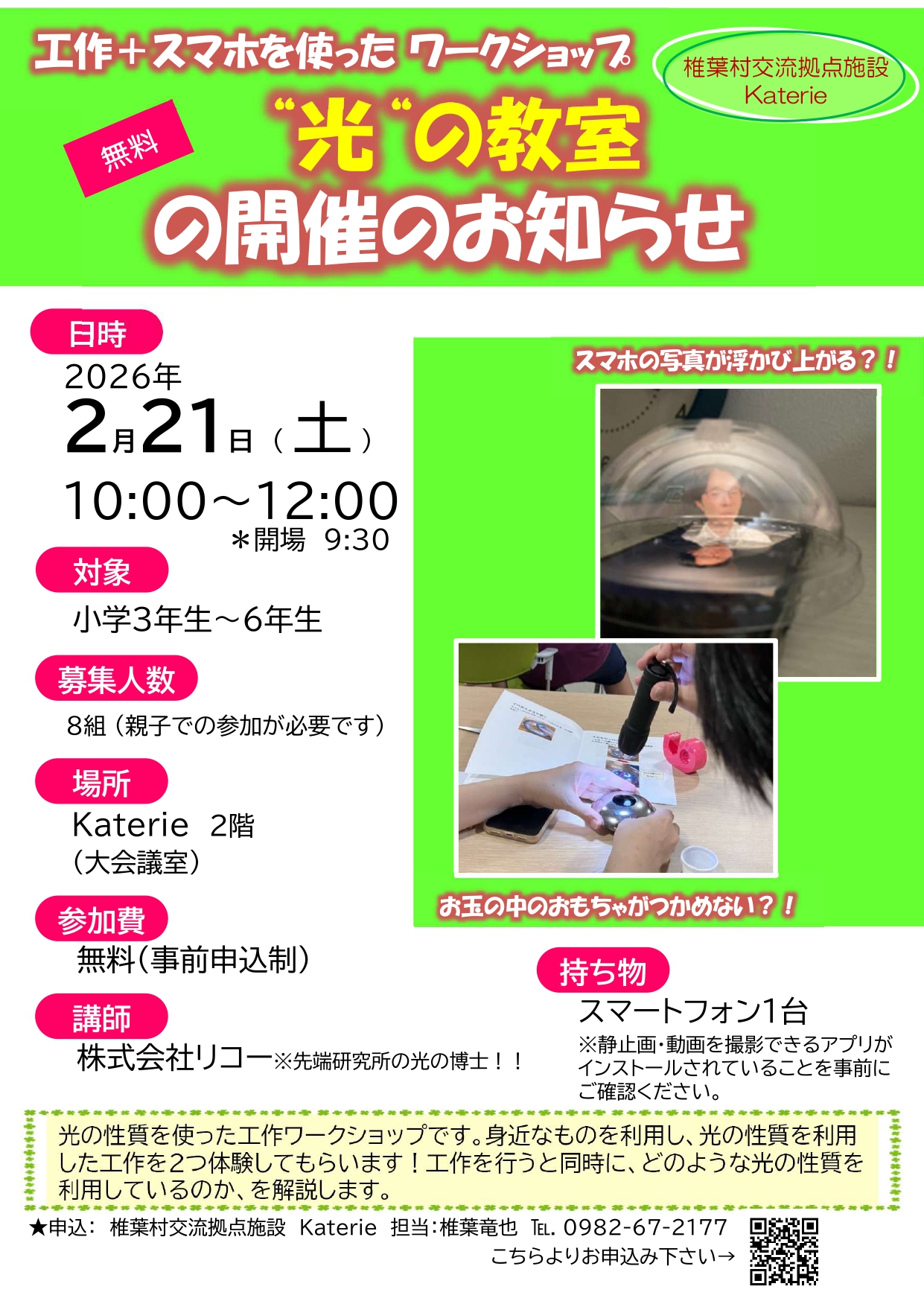光の性質を使った工作ワークショップで、身近なものを利用し光の性質を利用した工作が体験できます。講師は株式会社リコーの先端研究所の光の博士です。貴重な機会ですのでぜひご参加下さい。