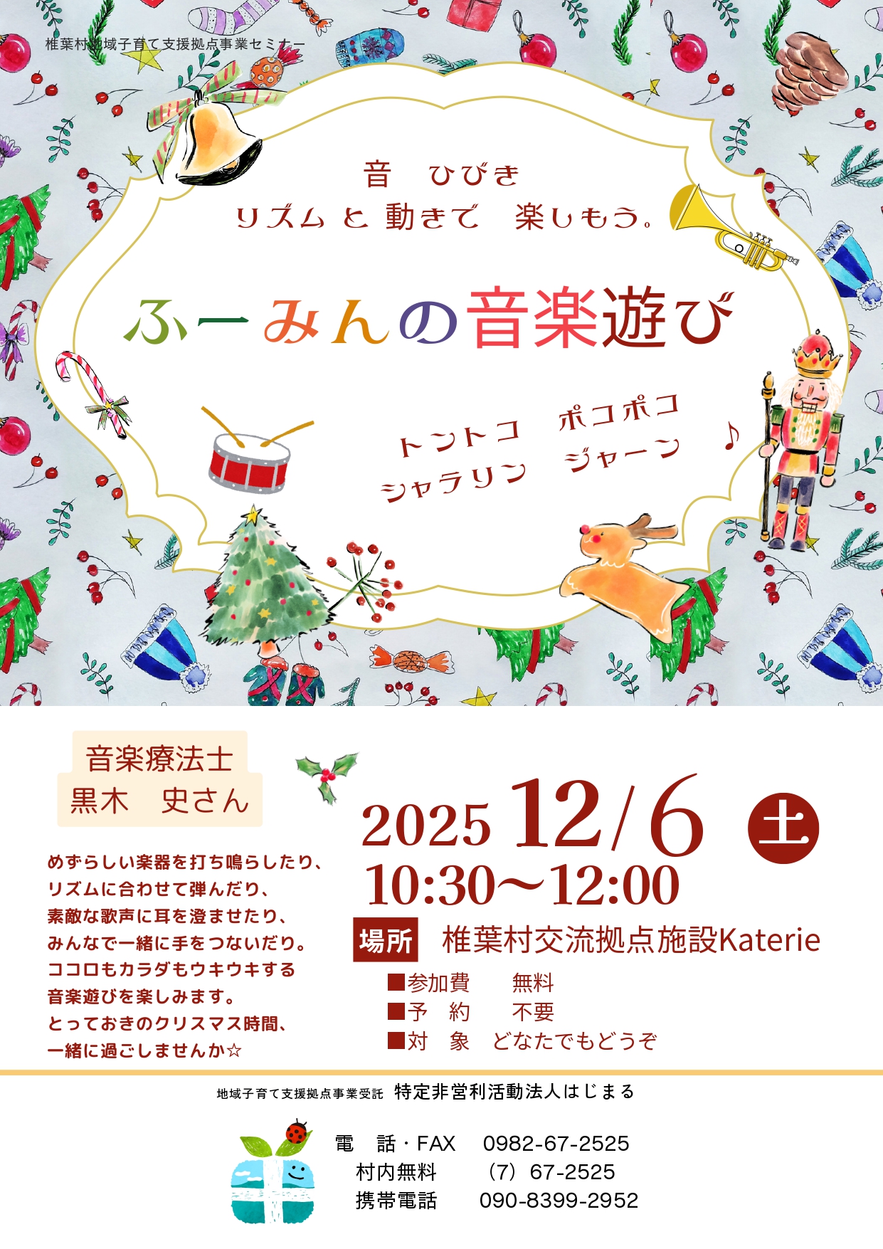 【ふーみんの音楽遊び】12月6日(土)10:30~12:00