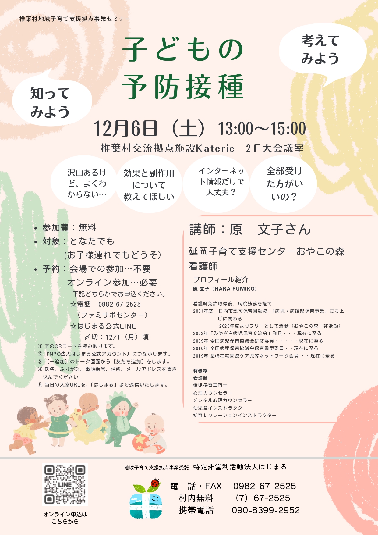 【こどもの予防接種】 12月6日(土)13:00~15:00