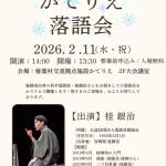 かてりえ落語会【2026年2月11日開催】 会場: 椎葉村交流拠点施設Katerie カテゴリ: イベント 2026.02.11 椎葉村交流拠点施設Katerieでは、延岡市出身の若手落語家・桂銀治さんをお招きし、「かてりえ落語会」を開催いたします。皆さまのご来場を、心よりお待ち… 詳細はこちら